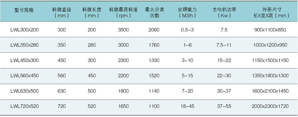 卸料過濾臥螺離心機型號規(guī)格:Specifications